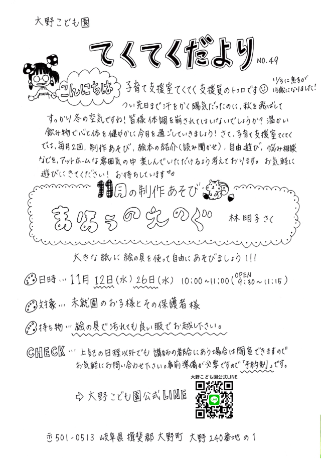 ご予約はこちら「大野こども園公式LINE」にて受付してます。